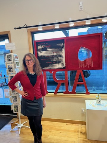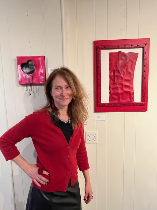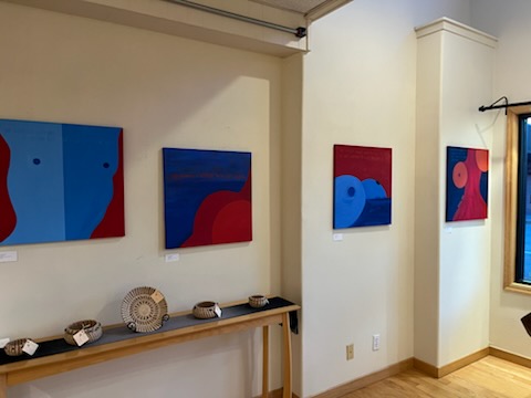 I’ve also approached it like paper, drawing on it, cutting out forms, and gluing them onto stretched canvas. I love the process of mixing pigments and exploring color, sometimes by partially blending colors before applying them, then continuing to manipulate them on the surface with brushes, palette knives, and my fingers.My hope is that This Is Not A Love Story resonates with our diverse community, at home in a gallery open to ALL.